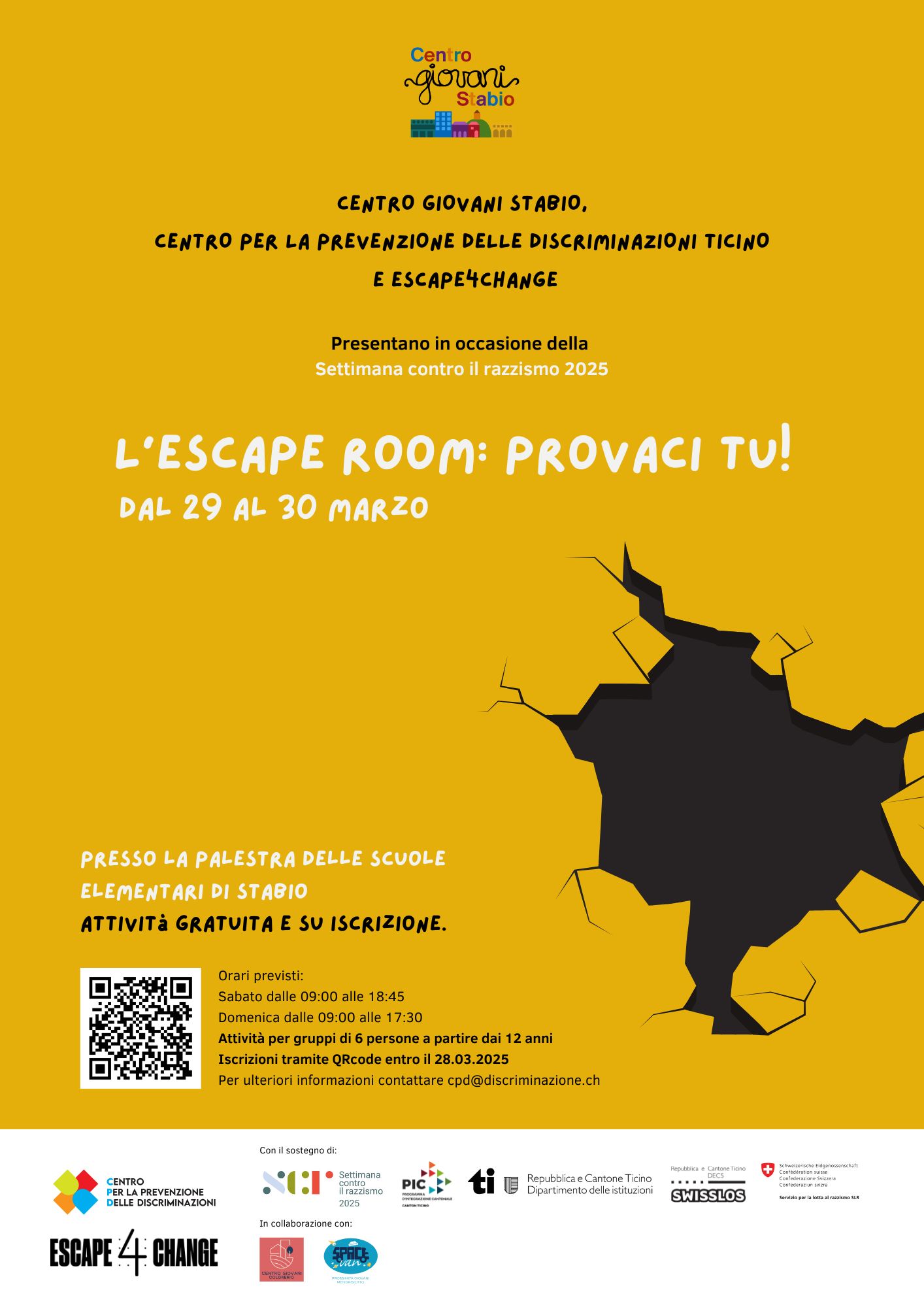 Quest’anno l’escape room contro il razzismo fa tappa presso la palestra delle scuole elementari di Stabio!